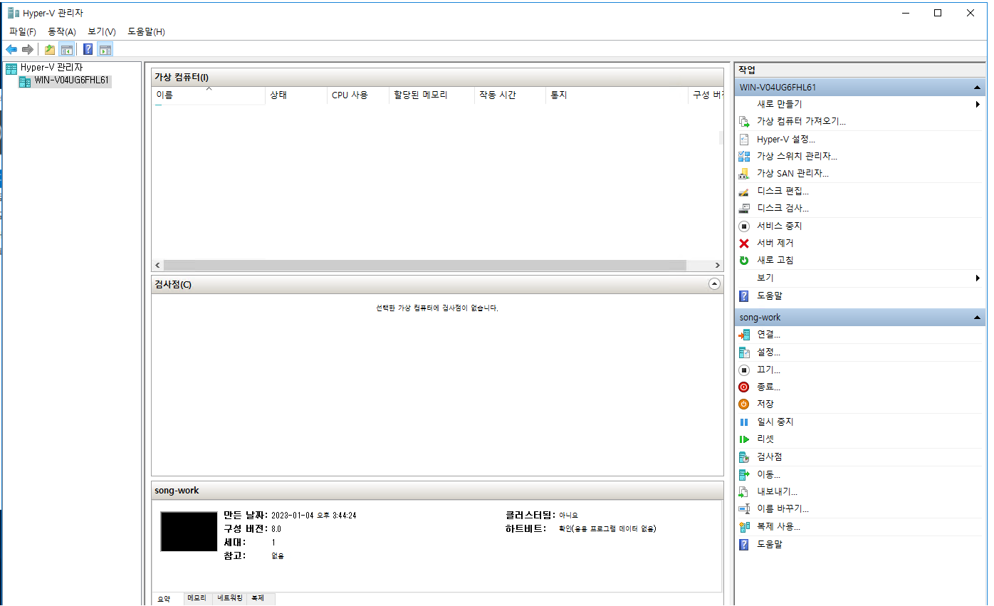 원격연결을 통해 hyper-v로 접속한다.