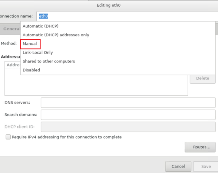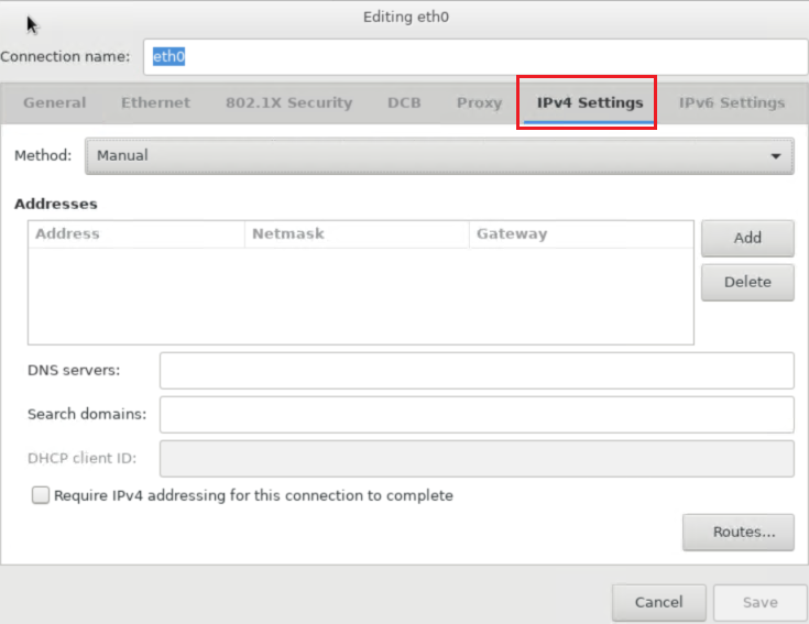 ipv4 setting > method: manual > addresses 설정