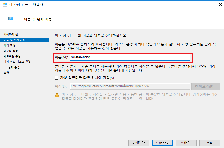 이름 및 위치지정 - 이름: master