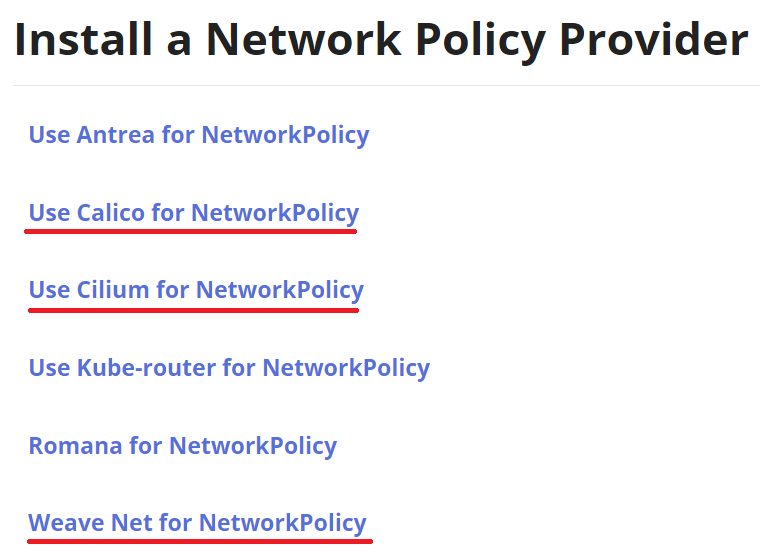 보통 calico, cilium, weaveNet 이렇게 세가지를 많이 쓴다.