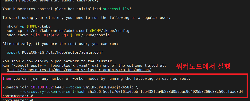 그 뒤에는 마스터노드와 워크노드 각각 작업을 해주는데(kubeadm init)