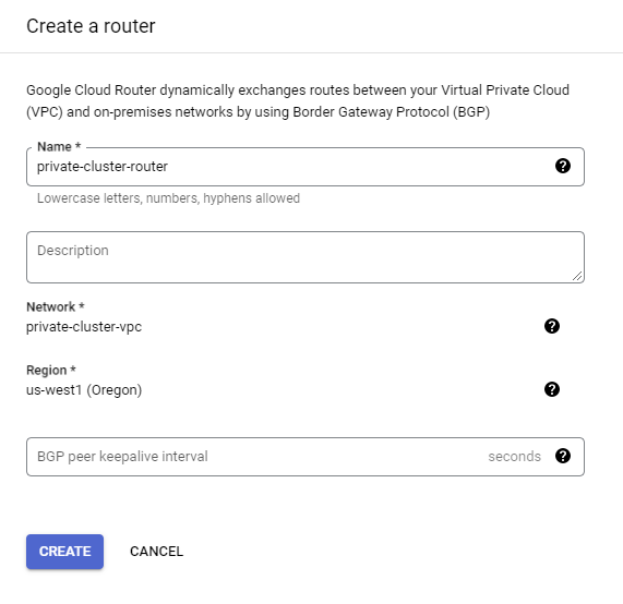 - network : 생성한 vcp network 선택(private-cluster-vpc)