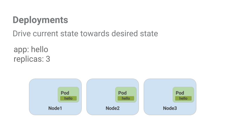 배포(deployments) : 실행 중인 pod 수가 사용자가 지정한 원하는 pod 수와 동일하도록 하는 선언적 방법