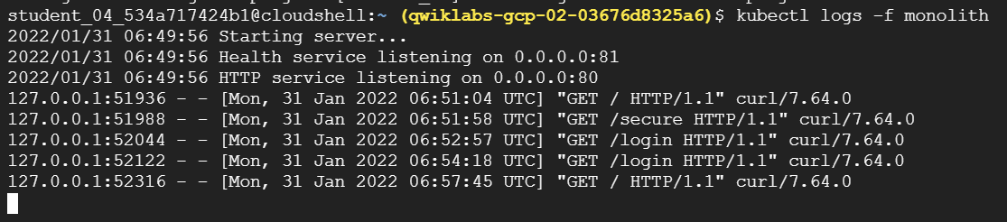 kubectl exec monolith --stdin --tty -c monolith /bin/sh