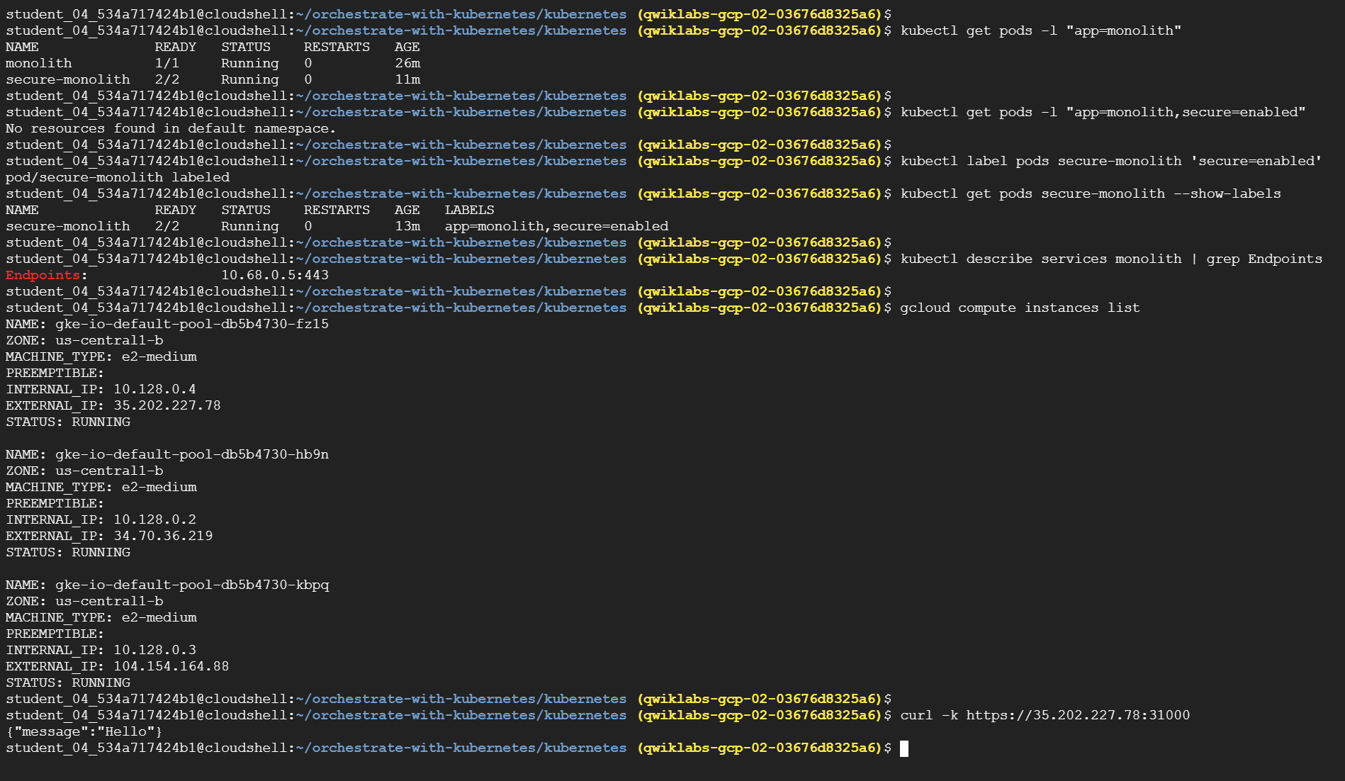kubectl get services monolith / kubectl describe services monolith 사용 확인