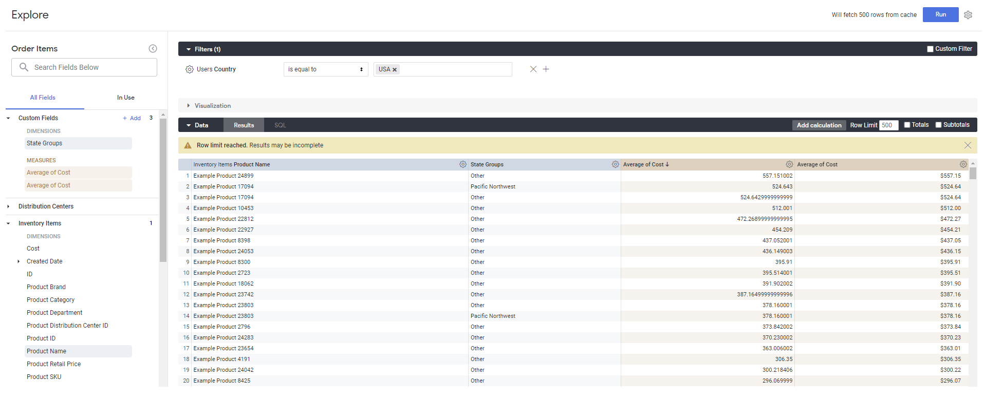 Looker 탐색에서 사용자 정의 필드 사용