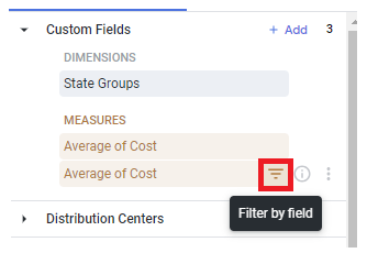 Custom Fields > Average of Cost 필터 선택