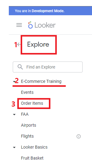 Development Mode > explore > E-Commerce Training > Order Items