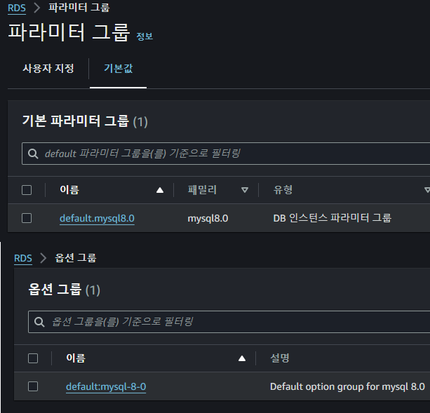그래서 yaml 안에 parameter group, option group을 새로 생성하는 코드를 넣었다.