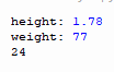 height = input("height: ") # 178 → 1.78로 입력