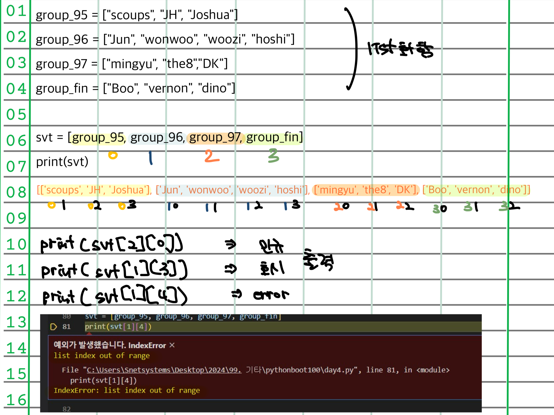 names = ["scoups", "JH","joshua","jun","wonwoo","woozi","hoshi"]