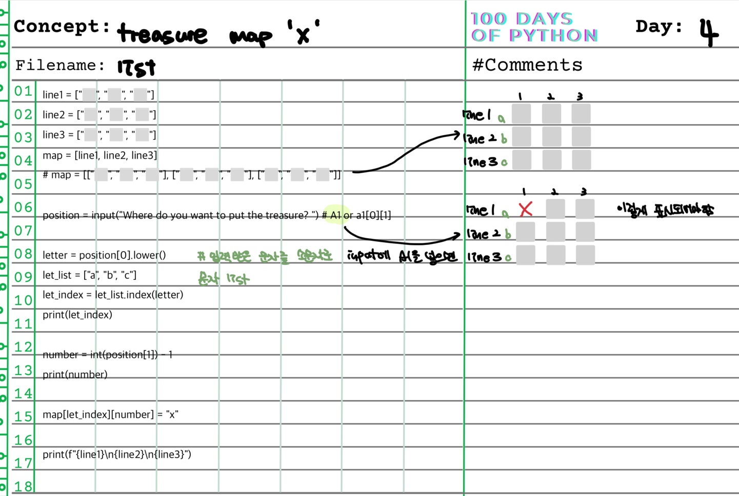 position = input("Where do you want to put the treasure? ") # A1 or a1[0][1]