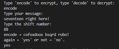 direction = input("Type 'encode' to encrypt, type 'decode' to decrypt:\n")