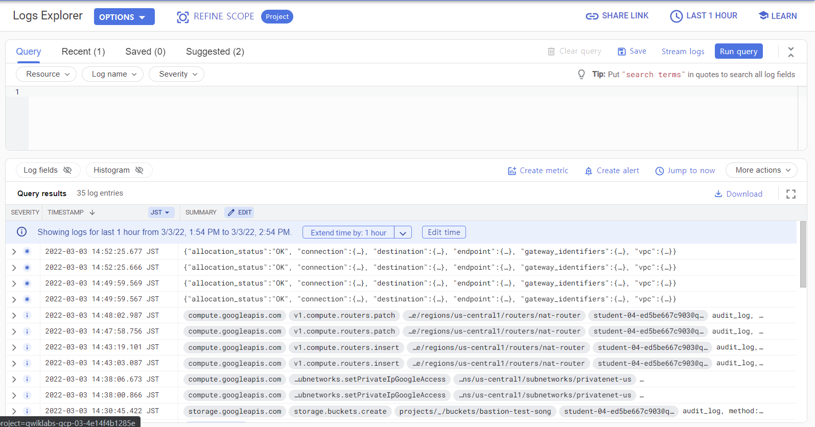 nat-config 클릭 > logs > cloud logging 링크 클릭