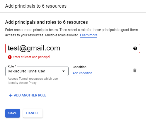 > add principal > role : iap-secured tunnel user 추가
