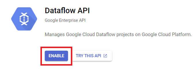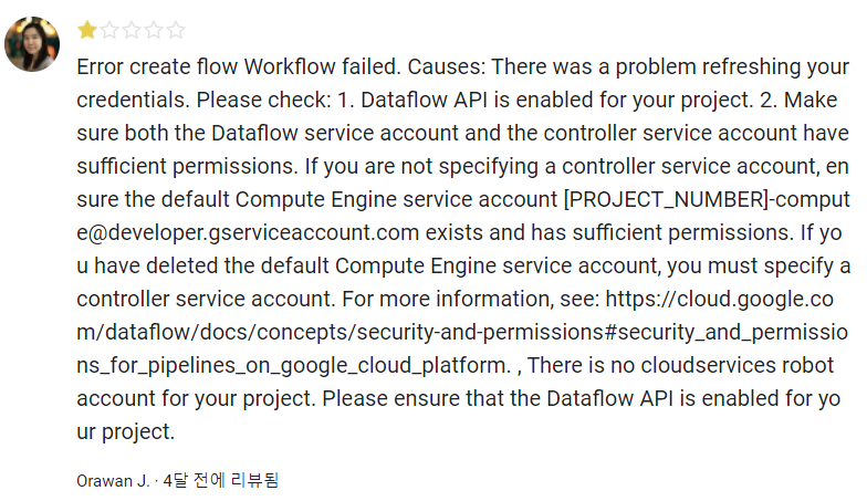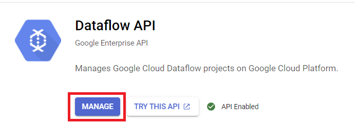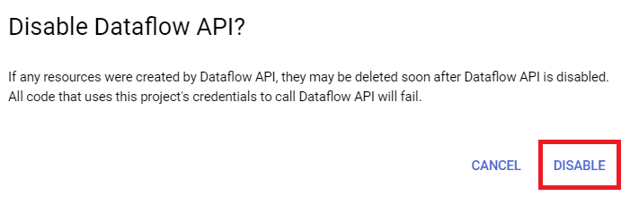 dataflow api 활성화가 되어있음 -> 이걸 disable 시켰다가 다시 enable