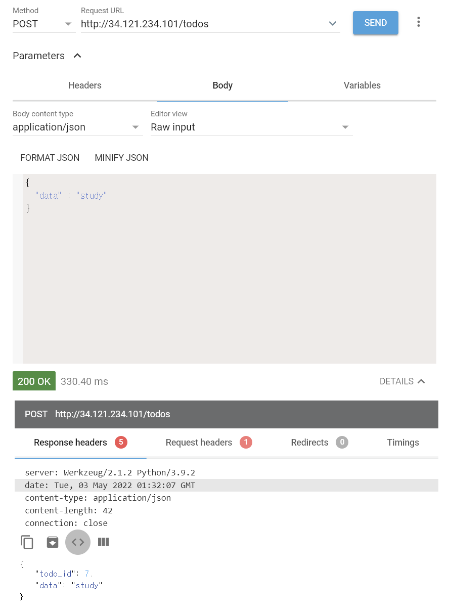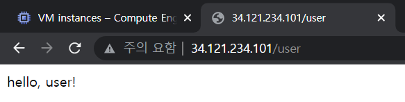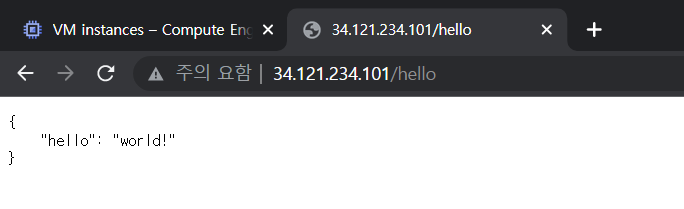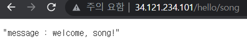 http://34.121.234.101/hello 경로로 들어갔을 때