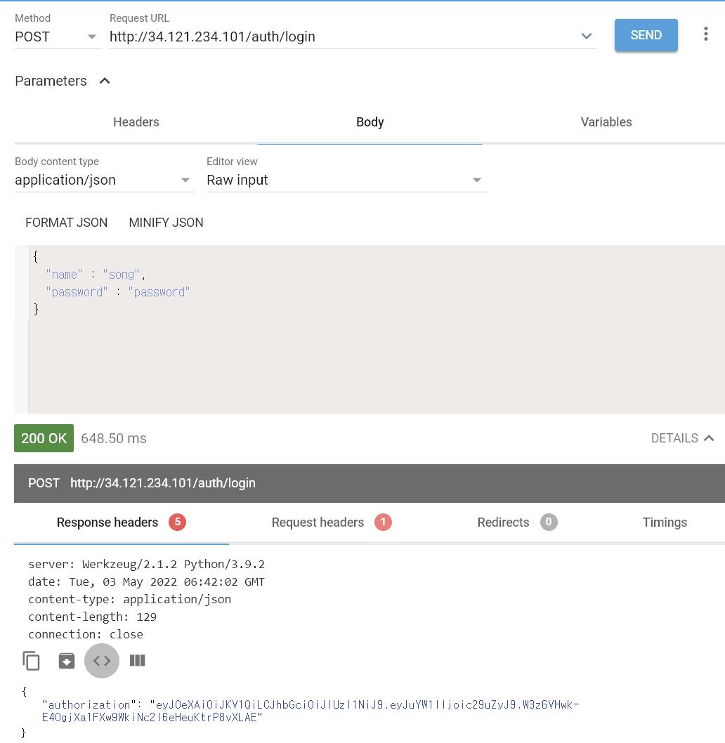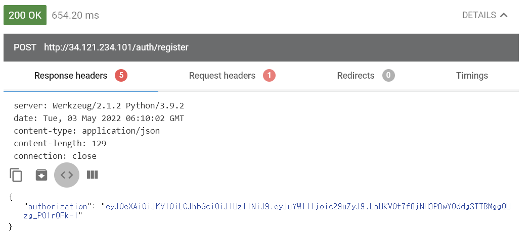 'authorization': jwt.encode({'name': name}, "secret", algorithm="HS256")