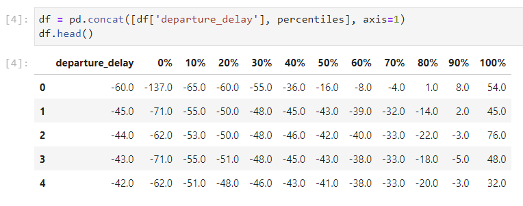df = pd.concat([df['departure_delay'], percentiles], axis=1)