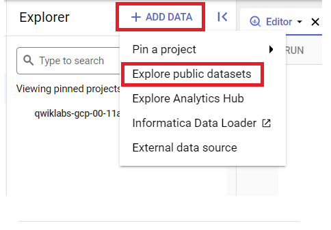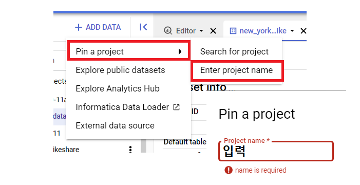 bigquery > add data > explore public datasets > 'NYC bike' 검색 > view datasets