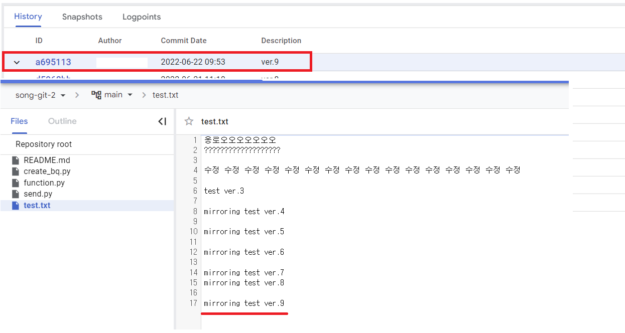 미러링이 됐는지 확인하면 history에서 확인할 수 있다.