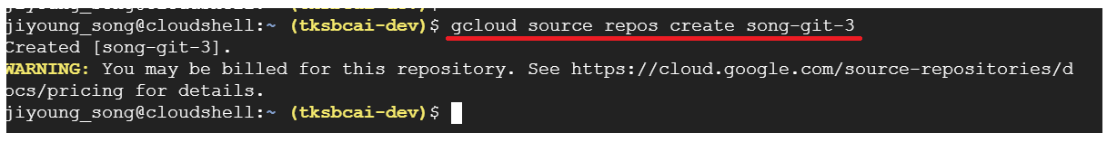 gcloud source repos create [사용할 scr이름]