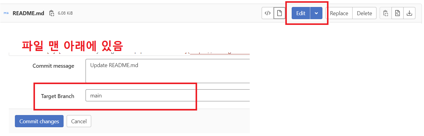 gitlab > repository > files > README.md > edit > target branch 확인