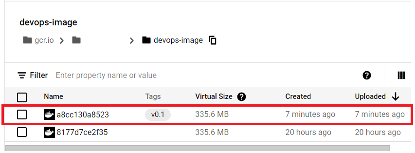 container registry > images > devops-image > 이미지 확인