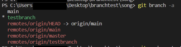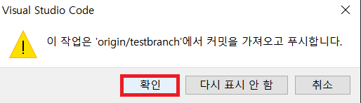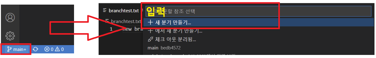 # 왼쪽 하단 main branch 클릭 > + 새 분기 만들기 > 브랜치명 'testbranch' 입력 > 커밋 >