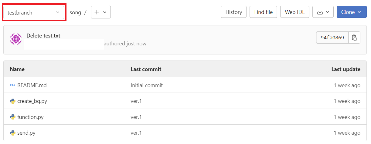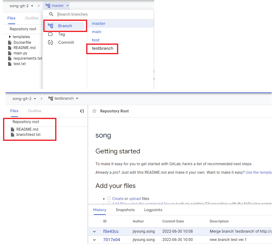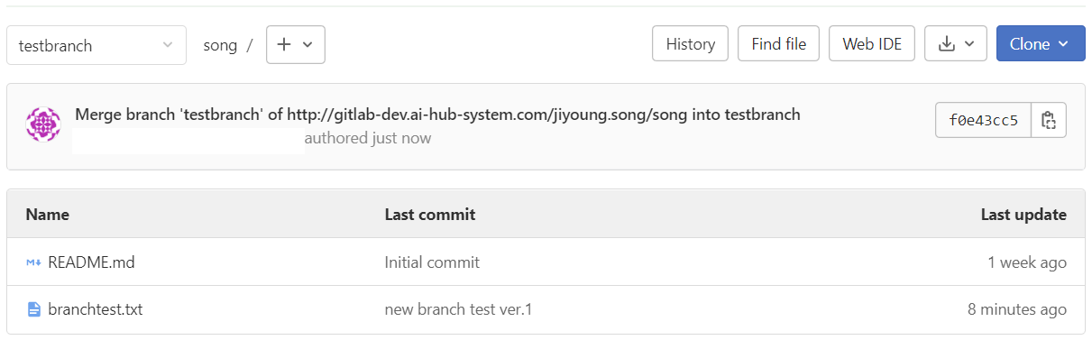 branchtest.txt 파일이 보여야한다.