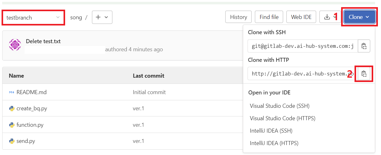 1. gitlab에 branch 생성