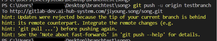를 하면 나는 git을 pull 하고 사용하라고 뜬다 << 에러났단 소리
