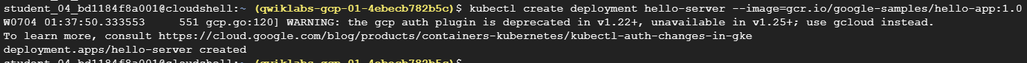 kubectl create deployment hello-server --image=gcr.io/google-samples/hello-app:1.0