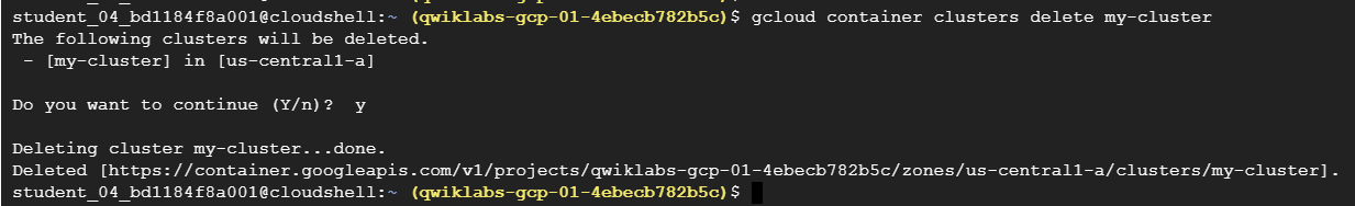 gcloud container clusters delete my-cluster