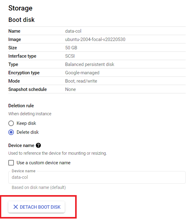 부팅 디스크 분리 및 재연결 | Compute Engine 문서 | Google Cloud